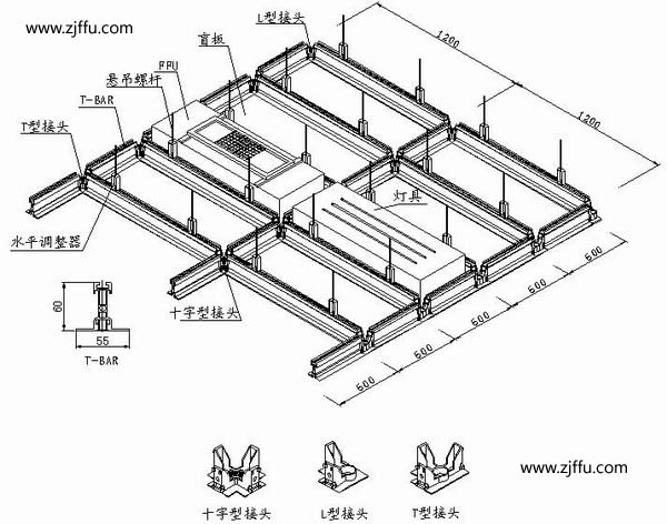當龍骨安裝一定區域后,需進行臨時定位,用重錘矯正吊頂的中心與十字基準線,偏差需在一毫米范圍內。可選擇柱子或土建鋼構和墻為定位點。