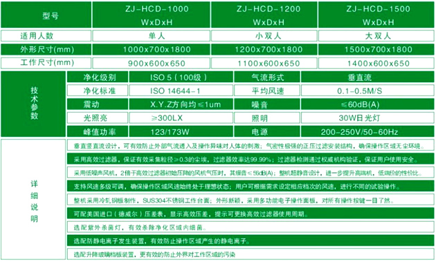 >>提供潔凈度等級(jí)為100級(jí)的操作環(huán)境,對(duì)于粒徑≥0.5μm的塵埃≤3.5顆/升;