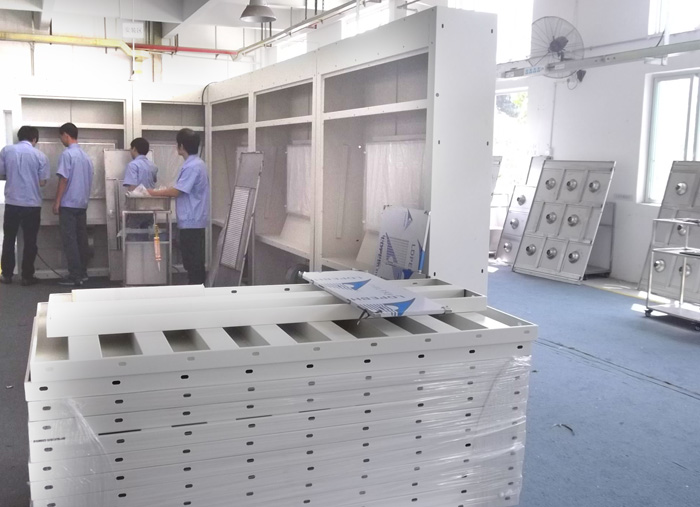 FFU、風淋室、貨淋室、傳遞窗、高效送風口、潔凈棚、潔凈采樣車等產品鈑金加工車間